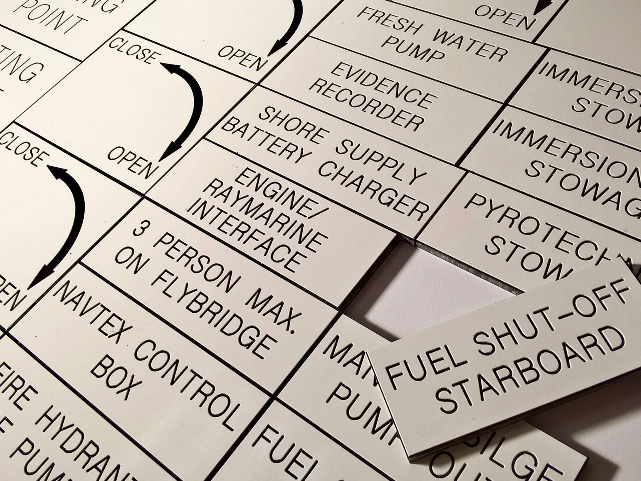 Alternatively, many industries use engraved Control Panels. We engrave and cut-out each one bespoke for you. Alongside Mimic panels our skilled engravers work to your exact specification using a multitude of materials.
